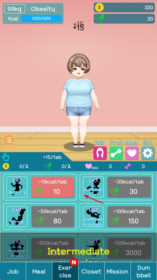 1、規(guī)劃飲食堅(jiān)持運(yùn)動:玩家需為女生合理安排飲食,搭配健康餐食,同時堅(jiān)持每天去健身房使用器材鍛煉,通過運(yùn)動消耗熱量,飲食控制攝入,雙管齊下實(shí)現(xiàn)體重下降。