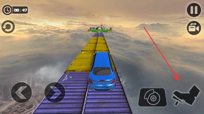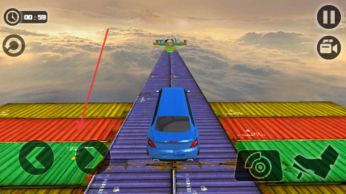 3、點(diǎn)擊右側(cè)油門按鍵,驅(qū)動(dòng)汽車沖過賽道障礙。
