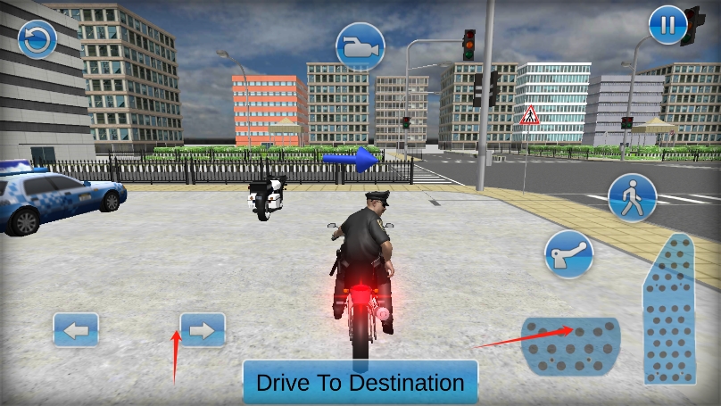 1、基礎(chǔ)駕駛操作:通過虛擬搖桿或按鍵控制摩托車的加速、剎車與轉(zhuǎn)向,在高速行駛中保持平衡,躲避障礙物與其他車輛,確保安全追擊。