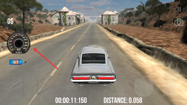 3、駕駛時(shí)留意左側(cè)時(shí)速表,控制車速,沿鄉(xiāng)村道路行駛,完成指定距離駕駛挑戰(zhàn)。