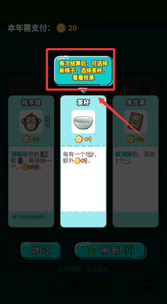 3、每次結(jié)算后可選擇新棋子的皮膚。