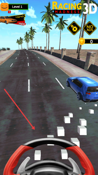 1、進(jìn)入《RACING MADNESS3D》Level1,操控方向盤,躲避白色方塊障礙,追趕前方藍(lán)色車輛。