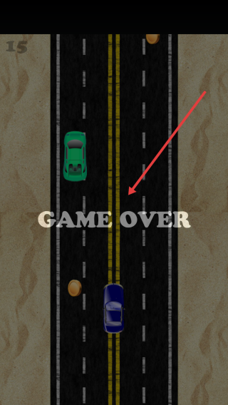 3、若賽車與其他車輛碰撞,觸發(fā)【GAME OVER】,重新開始游戲,爭取更遠行駛距離。
