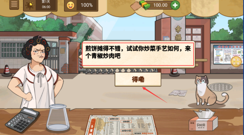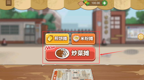 2、點(diǎn)擊炒菜攤按鈕,解鎖新菜品制作功能。