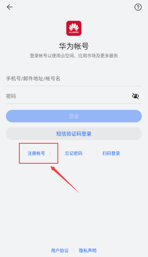 1、點擊注冊帳號按鈕,開始創(chuàng)建華為新賬號。