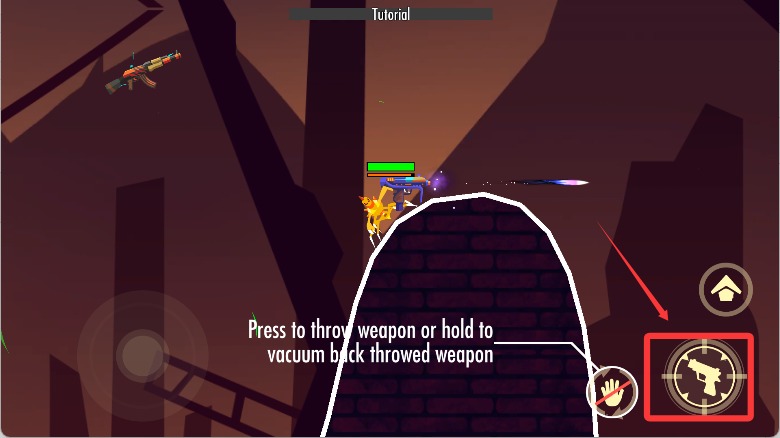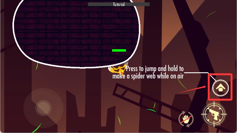 2、點擊右側(cè)圖示按鍵可以跳躍,長按可以發(fā)射繩索。