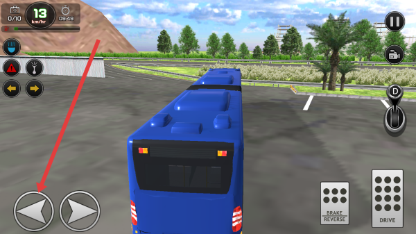 3、駕駛場景中,觀察箭頭指示,通過點擊左側(cè)方向按鍵,操控巴士轉(zhuǎn)向,平穩(wěn)行駛完成駕駛關(guān)卡。