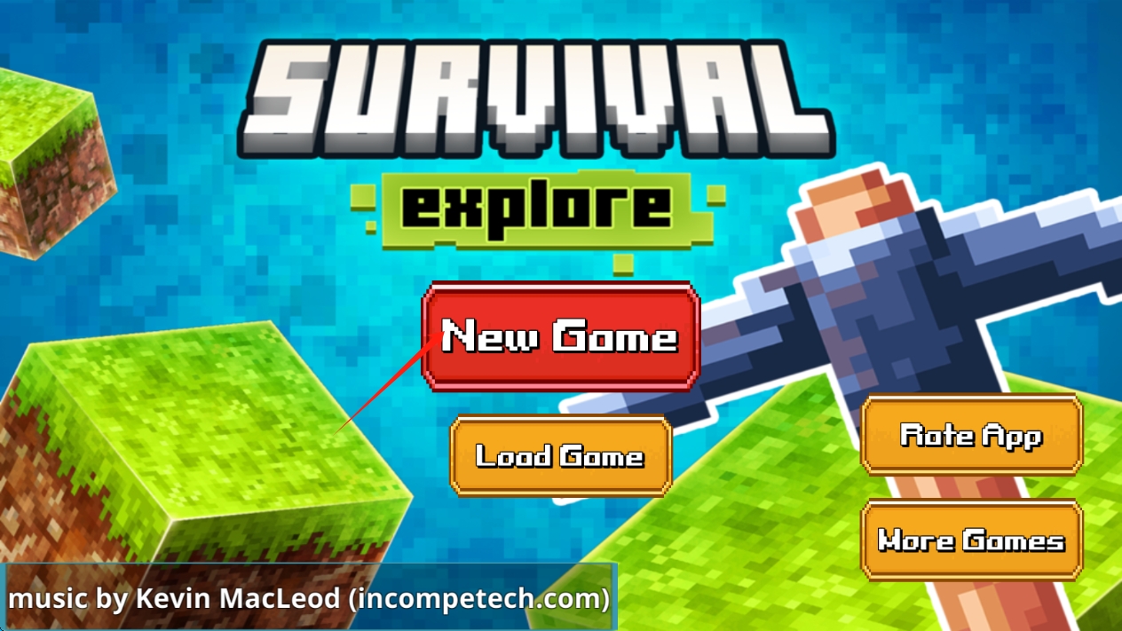 1、在Survival-Explore主界面,點(diǎn)擊New-Game,開啟全新生存探索之旅,進(jìn)入游戲世界,點(diǎn)擊開始游戲。