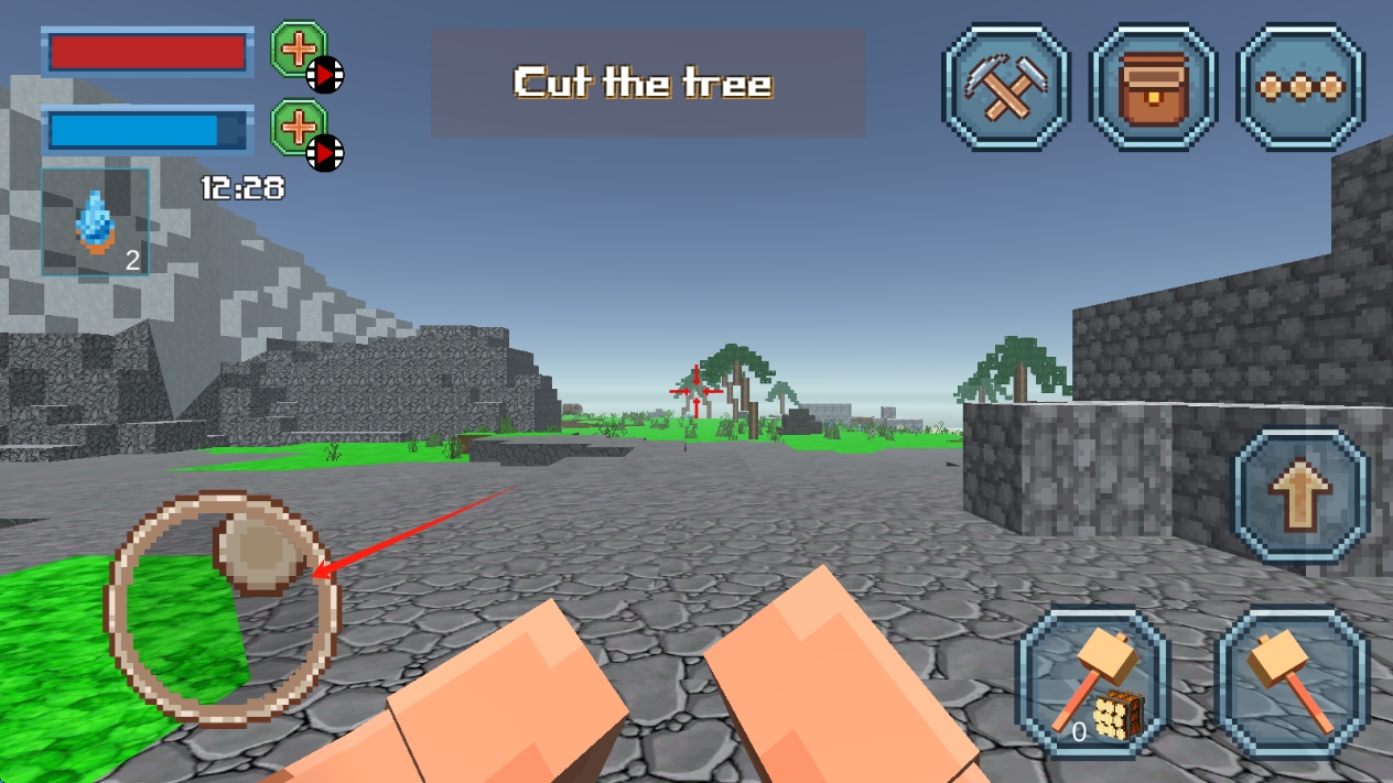 2、游戲中,通過左側(cè)搖桿移動(dòng)角色,前往樹木位置,準(zhǔn)備執(zhí)行Cut-the-tree任務(wù),撥動(dòng)輪盤移動(dòng)人物。