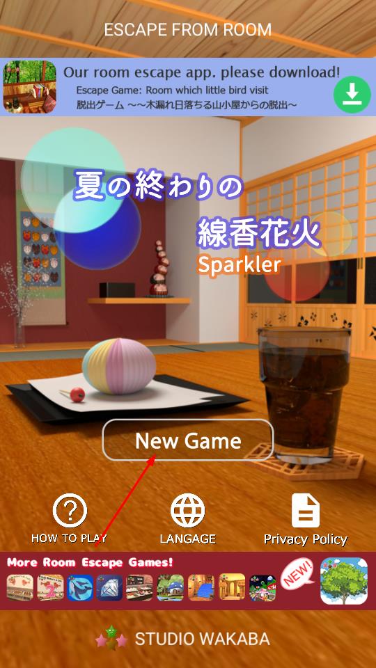 1、進入游戲界面后,點擊New Game按鈕開啟游戲,這是進入密室逃脫的關鍵操作,開啟解謎之旅。