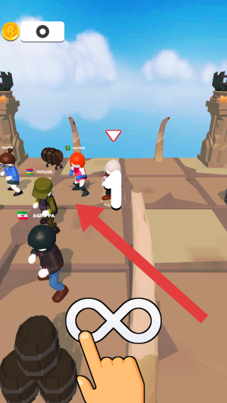 2、匹配了多個(gè)橡膠人玩家在場(chǎng)景中準(zhǔn)備戰(zhàn)斗,畫面左下角有無限符號(hào)的交互圖標(biāo),還有手指點(diǎn)擊示意,是戰(zhàn)斗或操作相關(guān)界面。