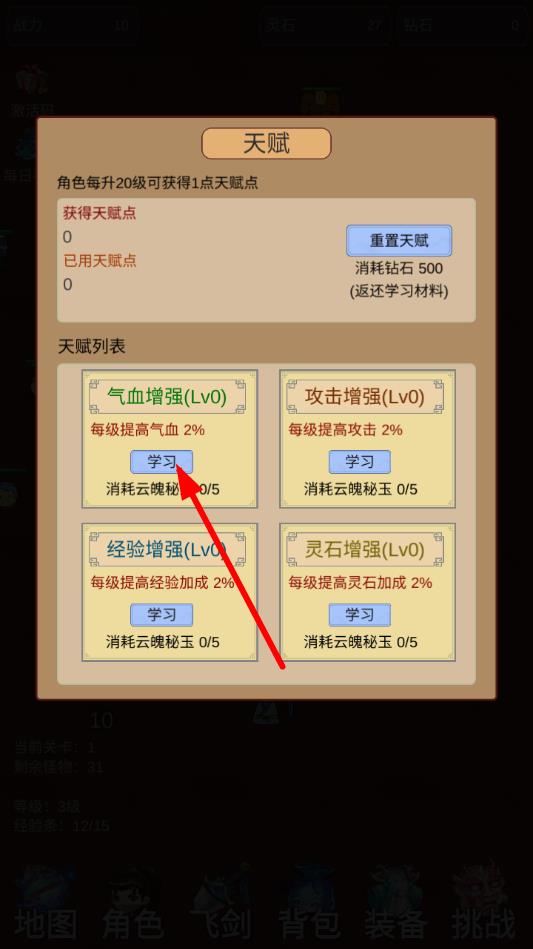 1、初入修仙界先創(chuàng)建角色,選擇初始門派,領(lǐng)取基礎(chǔ)功法與木劍,按照指引完成首次吐納修煉,開(kāi)啟修仙之路。