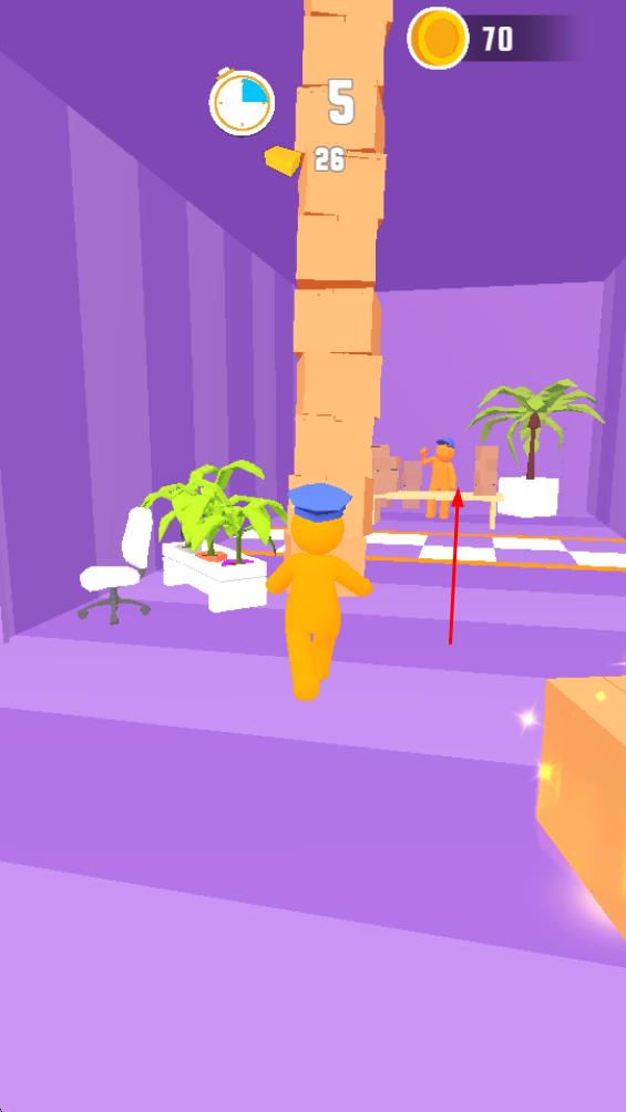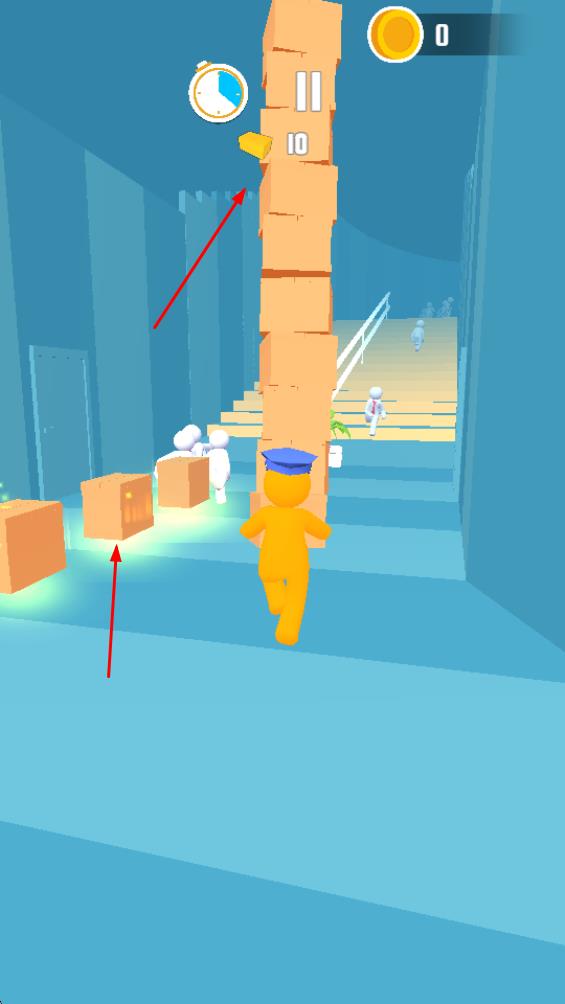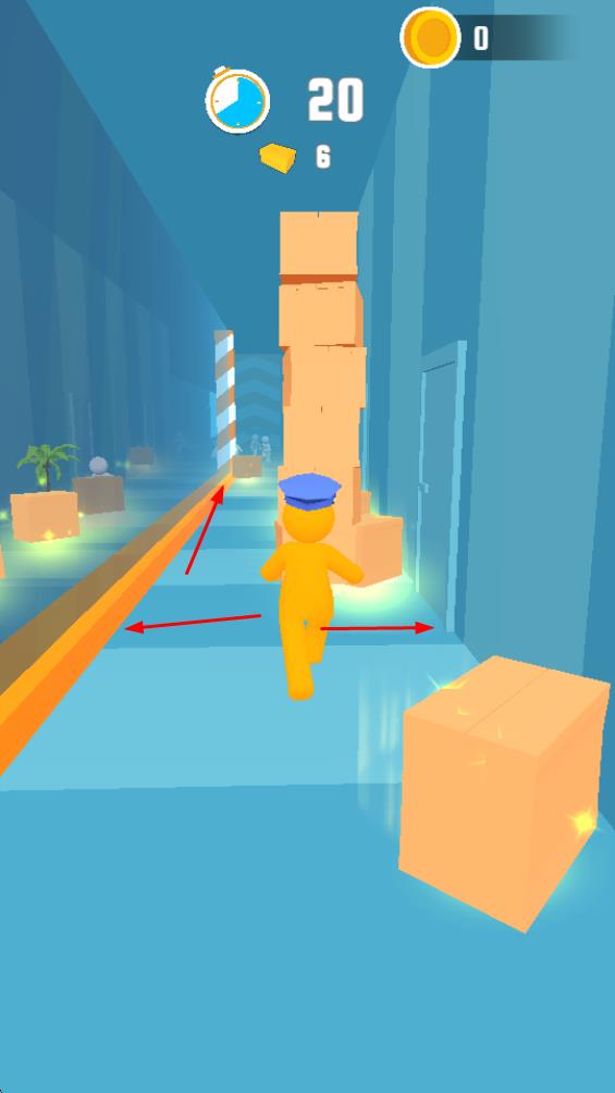 1、在室內(nèi)走廊場(chǎng)景操控黃色小人,通過(guò)滑動(dòng)屏幕調(diào)整移動(dòng)方向,躲避障礙物,收集金幣。