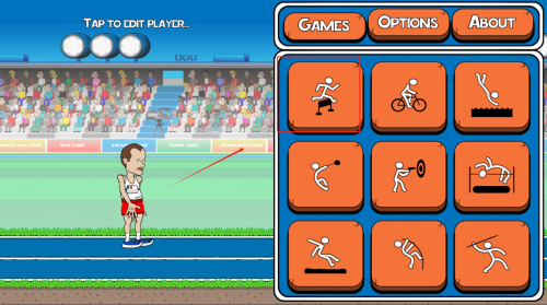 3、主界面設(shè)有項(xiàng)目選擇菜單,包含田徑、游泳等十余種賽事,根據(jù)興趣自由切換不同競(jìng)技內(nèi)容。