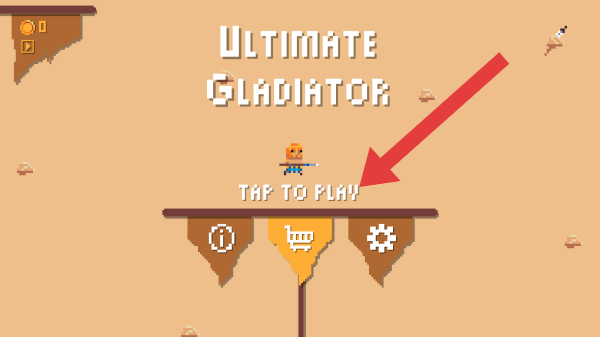 1、畫(huà)面中TAPTOPLAY是點(diǎn)擊開(kāi)始游戲的提示,還有金幣、鉆石顯示以及設(shè)置、商店等功能按鈕,像素風(fēng)格呈現(xiàn)出復(fù)古的角斗氛圍。