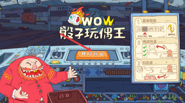 1、在開始游戲的頁面,點擊開始營業(yè)接待顧客,查看需求,顧客要的部件是什么,從下方選對應(yīng)玩偶零件。