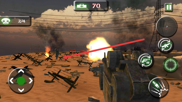 1、用左下角搖桿移動(dòng),瞄準(zhǔn)敵人后,點(diǎn)擊右側(cè)射擊按鈕按設(shè)計(jì)的按鈕攻擊,優(yōu)先攻擊遠(yuǎn)處敵人。