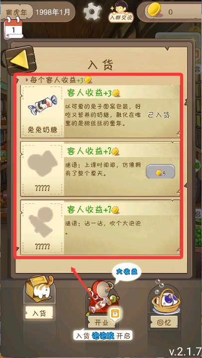3、選擇一個喜歡的商品入貨,入貨后就會有客人來了。