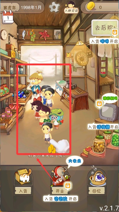 1、進入游戲后,你將開始經(jīng)營這家復古雜貨店,通過點擊顧客售賣商品獲得收益,并不斷上架新奇物品擴展經(jīng)營內(nèi)容。