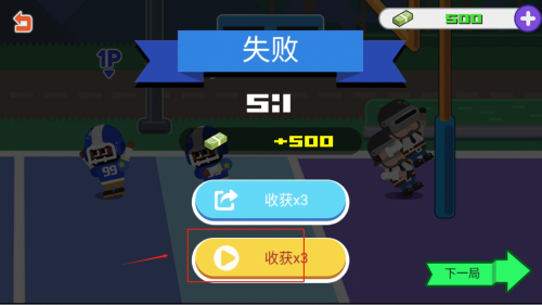 4、賽后可通過觀看推廣視頻獲取三倍金幣獎勵,用于解鎖新球員和升級球隊裝備。