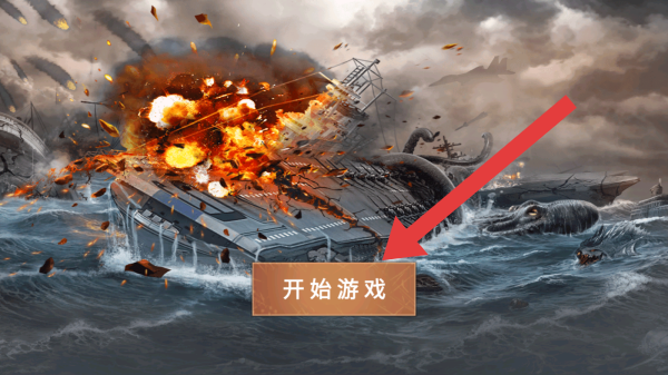1、畫面展示了戰(zhàn)艦爆炸,海中還有疑似海怪的場景,點(diǎn)擊開始游戲的按鈕,方可進(jìn)入。