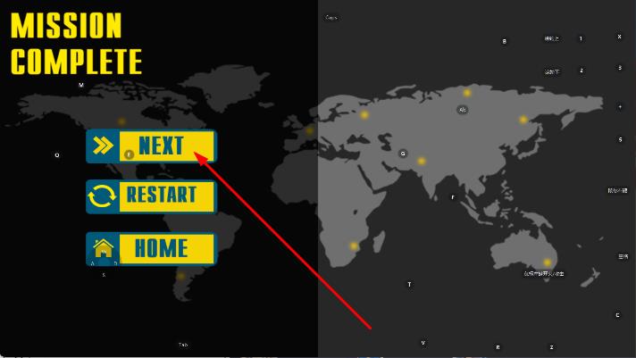3、完成任務(wù),在MISSION COMPLETE界面點(diǎn)NEXT,解鎖新地圖關(guān)卡,持續(xù)挑戰(zhàn)。