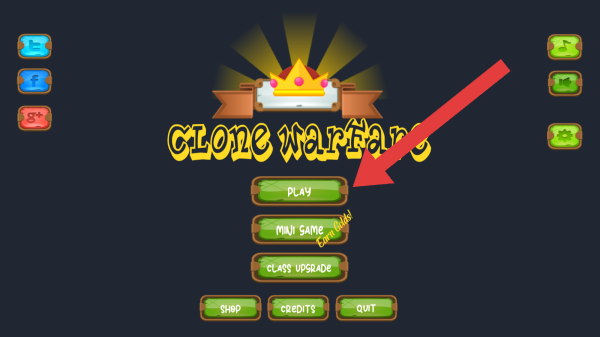 1、界面上有PLAY開始游戲的按鈕,左側(cè)有功能圖標(biāo),可根據(jù)需求進行點擊,以及右側(cè)的四個綠色功能圖標(biāo)。