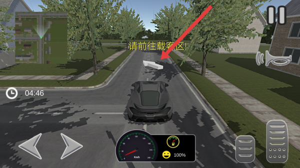 3、進入駕駛階段,遵循請前往載客區(qū)提示,操控車輛駛向箭頭指引的載客區(qū),準(zhǔn)備接載乘客。