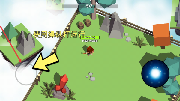 1、進(jìn)入等級(jí)1場(chǎng)景,按提示使用左側(cè)操縱桿運(yùn)行,操控角色在浮空島區(qū)域移動(dòng)探索。