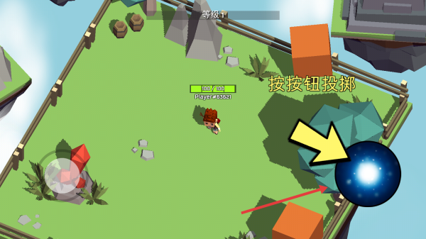 2、遇到藍(lán)色光球,依據(jù)提示按按鈕投擲,利用技能道具,助力冒險(xiǎn)戰(zhàn)斗與場(chǎng)景交互。