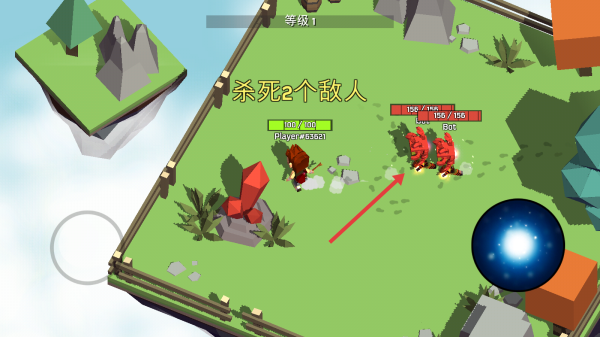 3、接取殺死2個(gè)敵人任務(wù),找到紅色怪物,通過移動(dòng)與投擲操作,消滅敵人完成目標(biāo)。