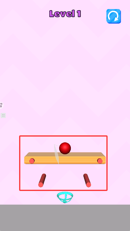 2、在屏幕上畫線,割掉木板,讓小球進(jìn)入框中。