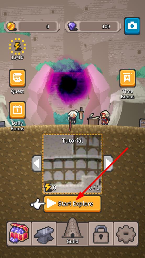 1、在游戲主界面,點(diǎn)擊Start Explore按鈕,進(jìn)入Tutorial教程,開啟冒險之旅。