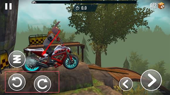 2、選定關(guān)卡后,按住屏幕右下角按鍵控制車輛移動,左下角按鈕可前后微調(diào),遇障礙點擊左側(cè)跳躍按鈕,同時展示特技動作加分。