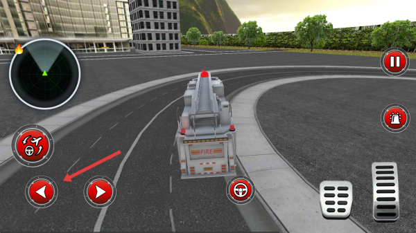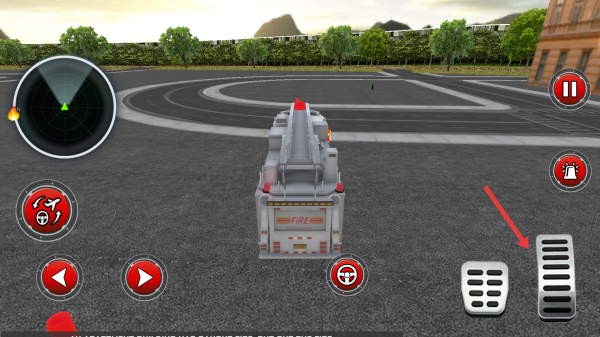 1、用右側(cè)油門踏板加速,左側(cè)方向鍵控制消防車轉(zhuǎn)向。