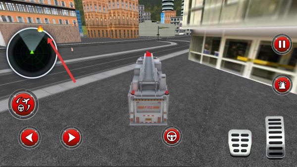 2、根據(jù)雷達(dá)左上角提示的火災(zāi)位置,駕駛消防車前往。