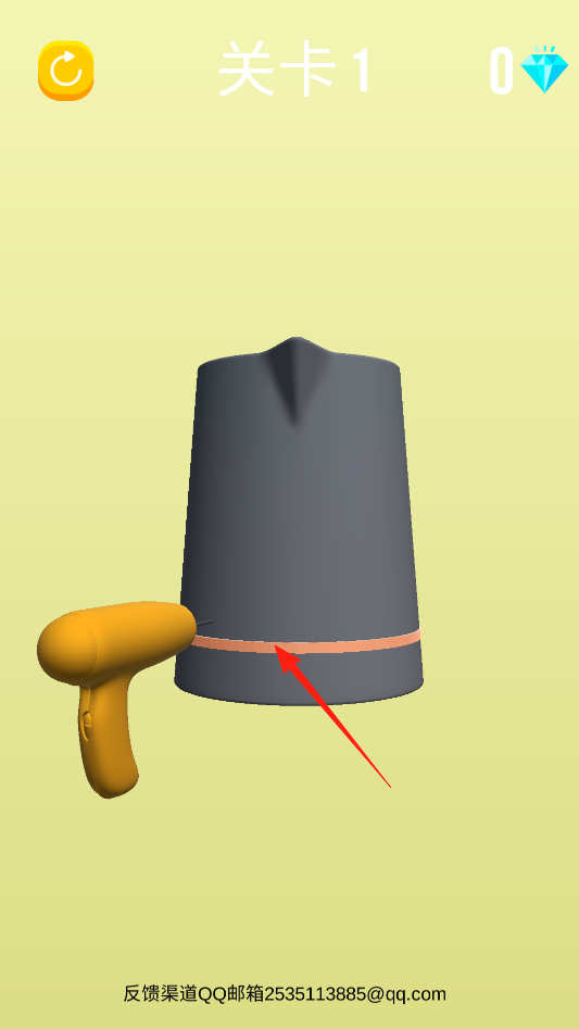 1、進(jìn)入關(guān)卡1,面對(duì)灰色容器與黃色工具,點(diǎn)擊工具對(duì)準(zhǔn)容器標(biāo)記處,觸發(fā)塑形操作,借助加熱塑形機(jī)制,改變?nèi)萜魍庥^,通過(guò)操作,開(kāi)啟物品改造玩法,感受創(chuàng)意加工的樂(lè)趣。