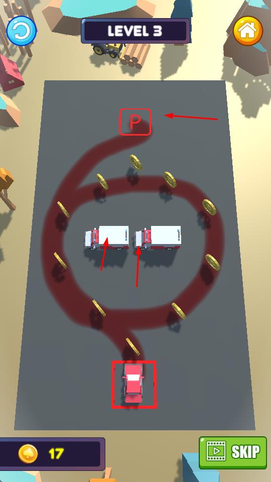3、闖關(guān)升級挑戰(zhàn)自我:關(guān)卡內(nèi)容豐富,每個(gè)關(guān)卡的障礙物布局、停車位位置都不同,難度隨關(guān)卡遞增,玩家需不斷優(yōu)化畫線策略,挑戰(zhàn)更復(fù)雜的停車場景,提升路線規(guī)劃能力。