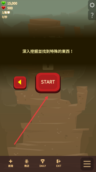 1、在界面點擊START按鈕,開啟這場挖掘探索之旅,準備深入挖掘去探尋特殊的東西。