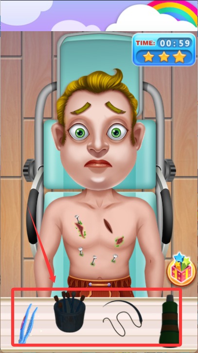 4、最后就可以開(kāi)始游戲,使用下方的道具開(kāi)始手術(shù)了。