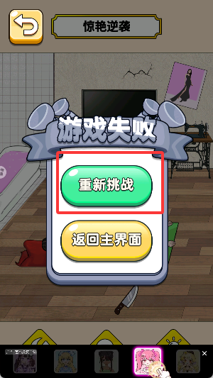 4、失敗了不要緊,點(diǎn)擊重新挑戰(zhàn)繼續(xù)游玩。
