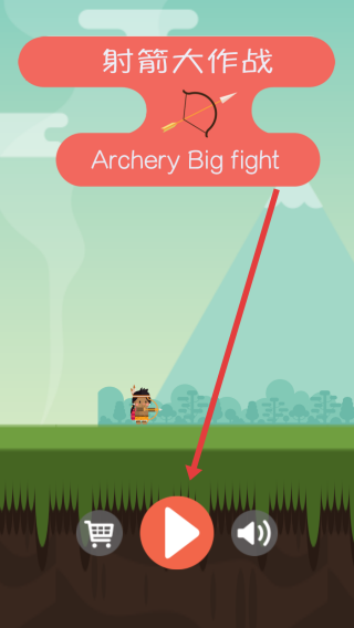 1、在射箭大作戰(zhàn)初始界面,根據(jù)箭頭指引處,點(diǎn)擊紅色播放按鈕,進(jìn)入游戲場景開啟射箭挑戰(zhàn)。