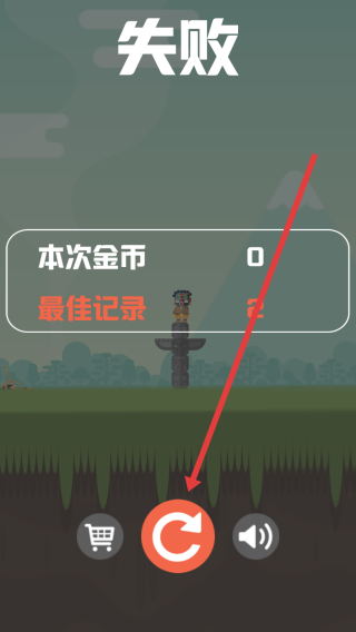 3、若挑戰(zhàn)失敗,在失敗界面處,通過點(diǎn)擊紅色重玩按鈕,重新進(jìn)入關(guān)卡再次嘗試射中目標(biāo)。