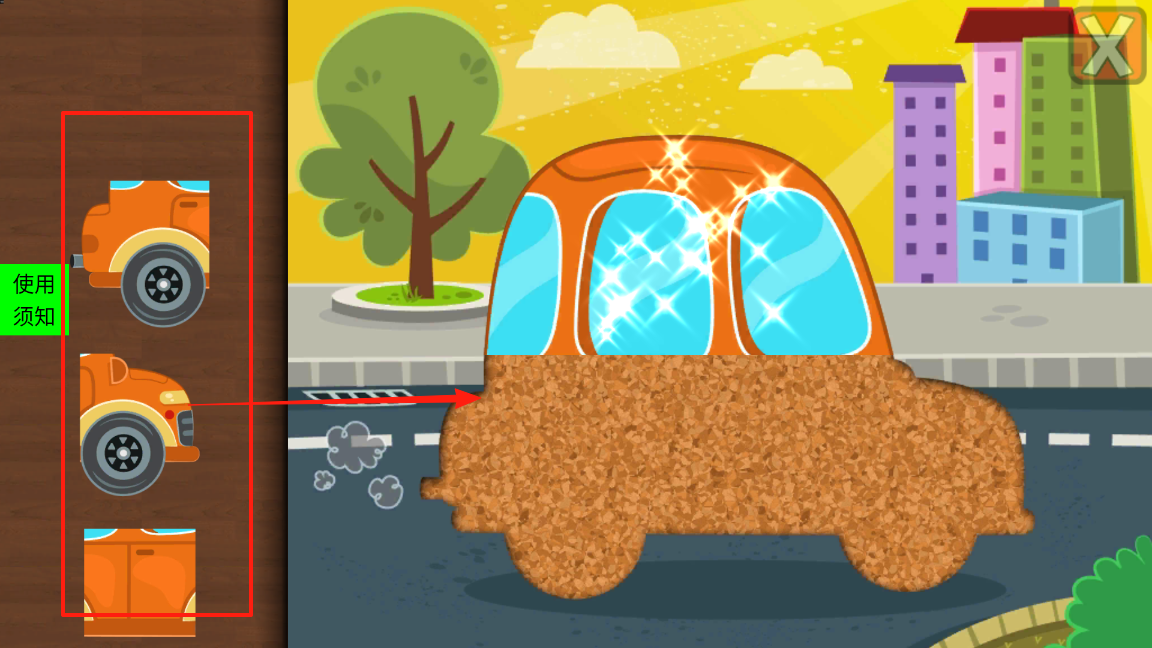 3、繼續(xù)拼圖過程,左側(cè)拆分出汽車部件,右側(cè)是未完成的汽車拼圖,將拆分部件拖至右側(cè)對(duì)應(yīng)空缺處,拼接成完整汽車,通過精準(zhǔn)放置部件,完成拼圖,感受細(xì)節(jié)拼接的樂趣。