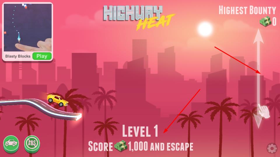 1、首先下載完成以后進(jìn)入游戲界面,看到LEVEL 1信息,明確目標(biāo)分?jǐn)?shù)如1,000、準(zhǔn)備開啟游戲駕駛車輛出發(fā)。