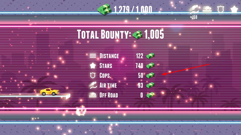 3、游戲結(jié)束后查看TOTAL BOUNTY等數(shù)據(jù),包括距離、星星數(shù)量等,了解游戲成績可重新挑戰(zhàn)。