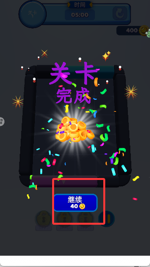 4、每次過關(guān)都會獲得金幣,點擊繼續(xù)即可領(lǐng)取。
