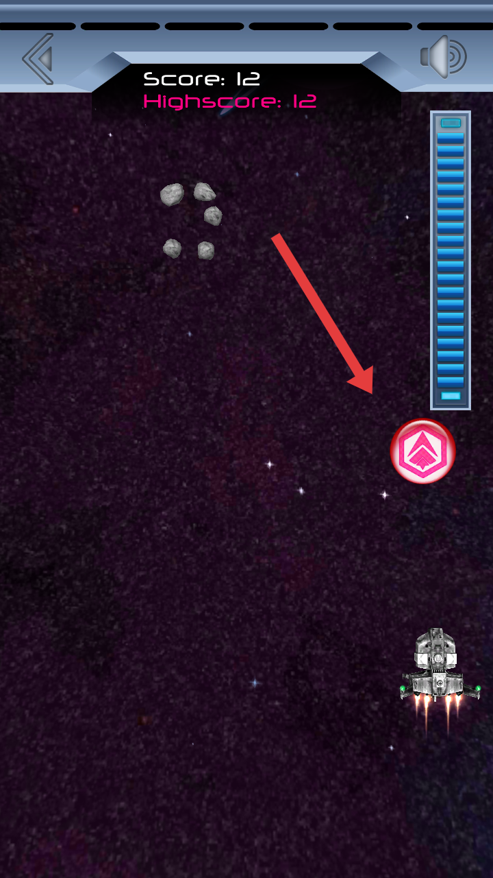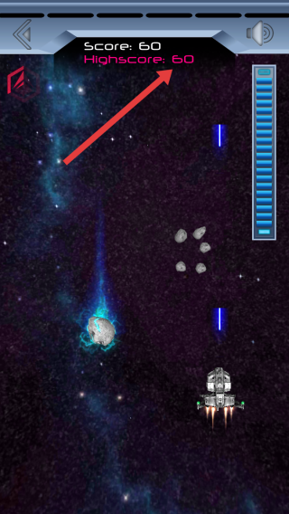 3、在收集藍色的光柱增強自身的能力,攻擊帶藍光的特殊隕石,沖擊Highscore的高分記錄。