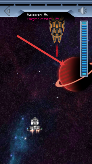 2、在飛行中需要規(guī)避敵方飛船發(fā)射的紅色激光,還需要繞開紅色的行星,避免飛船碰撞損耗。