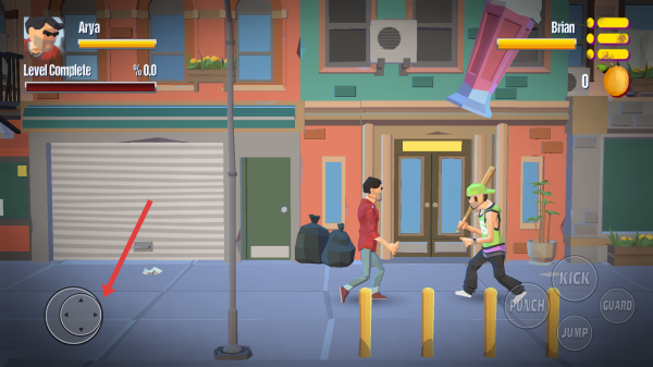 2、戰(zhàn)斗時,用左側(cè)搖桿控制角色移動,靠近敵人如持棒球棍的Brian,準(zhǔn)備攻擊。
